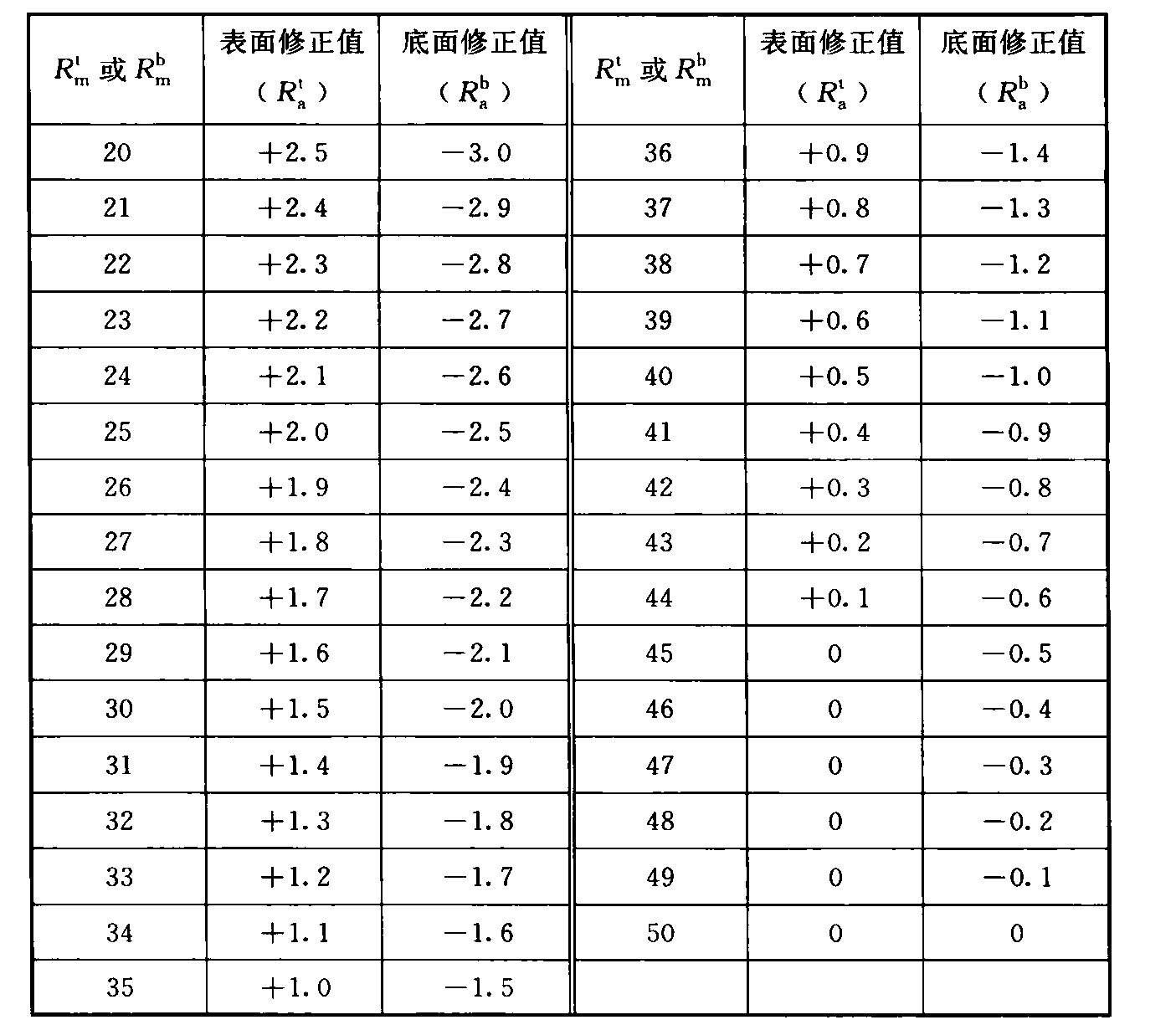 注:1 Rmt或Rmb小于20或大于50时,分别按20或50查表;