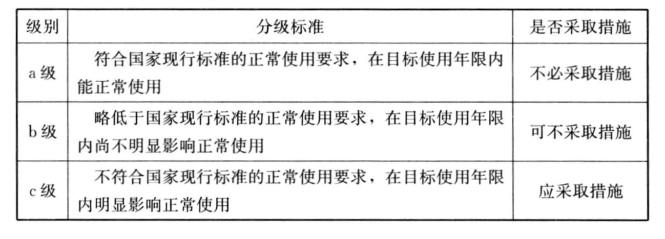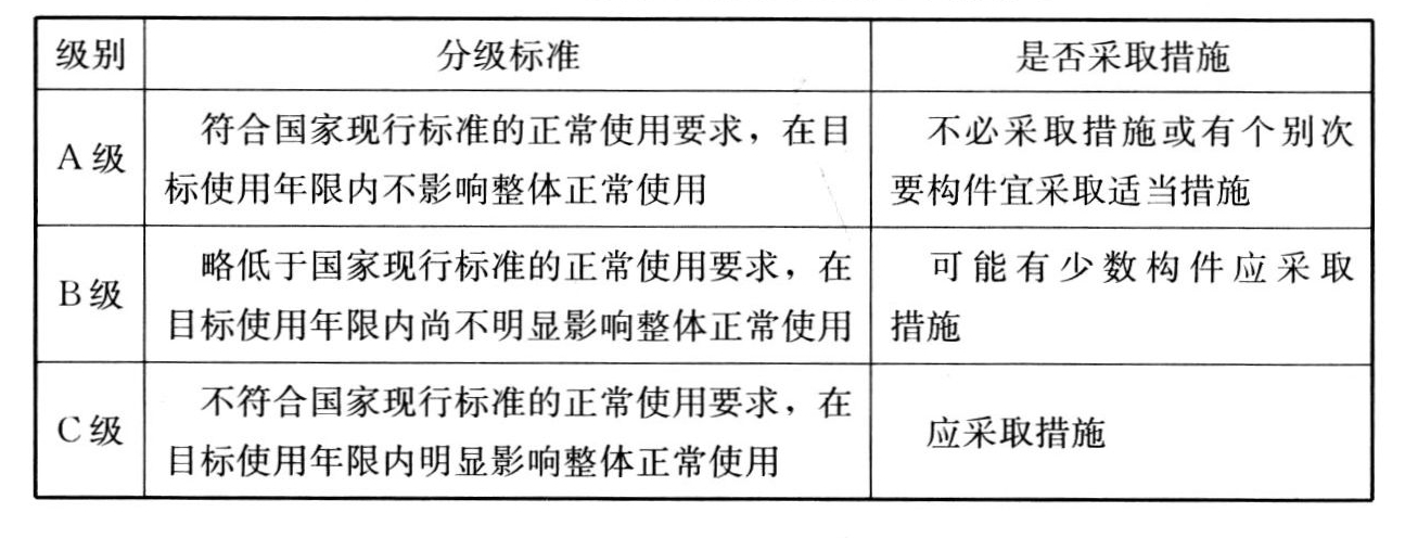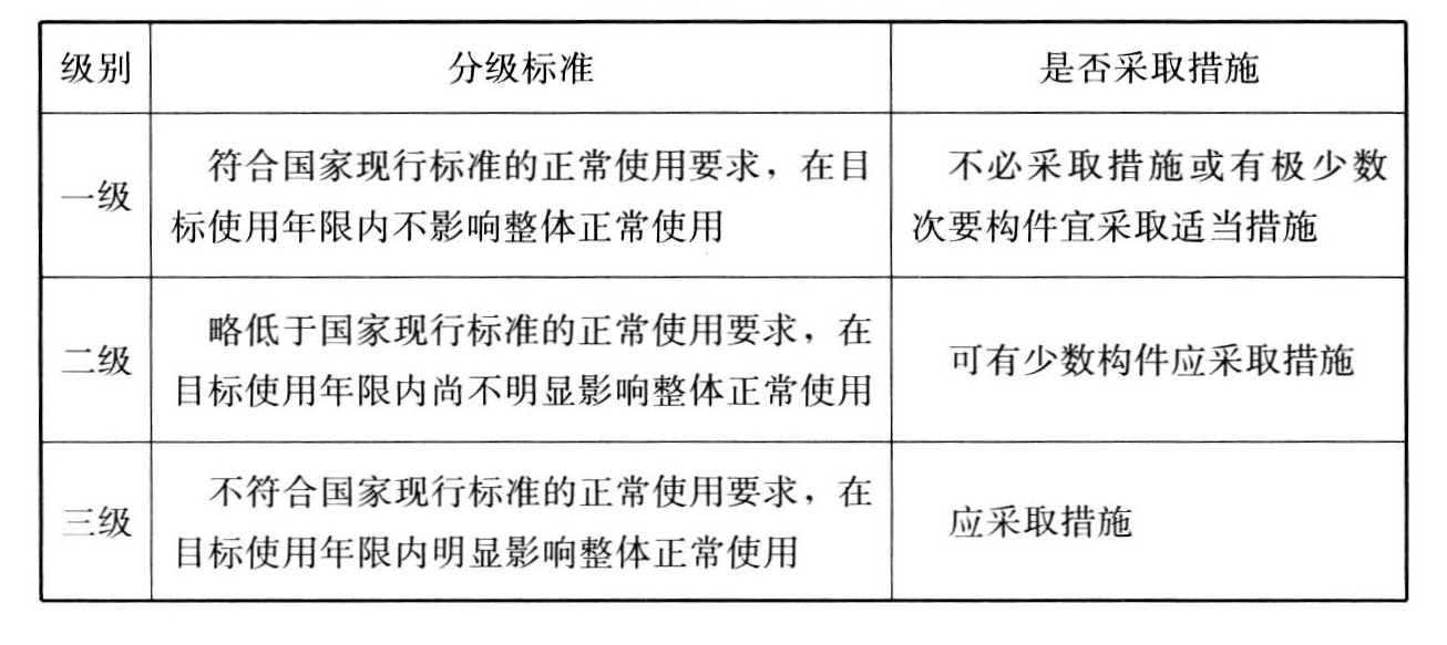 2 鉴定单元的使用性评级标准应符合表3.3.3-2的规定;