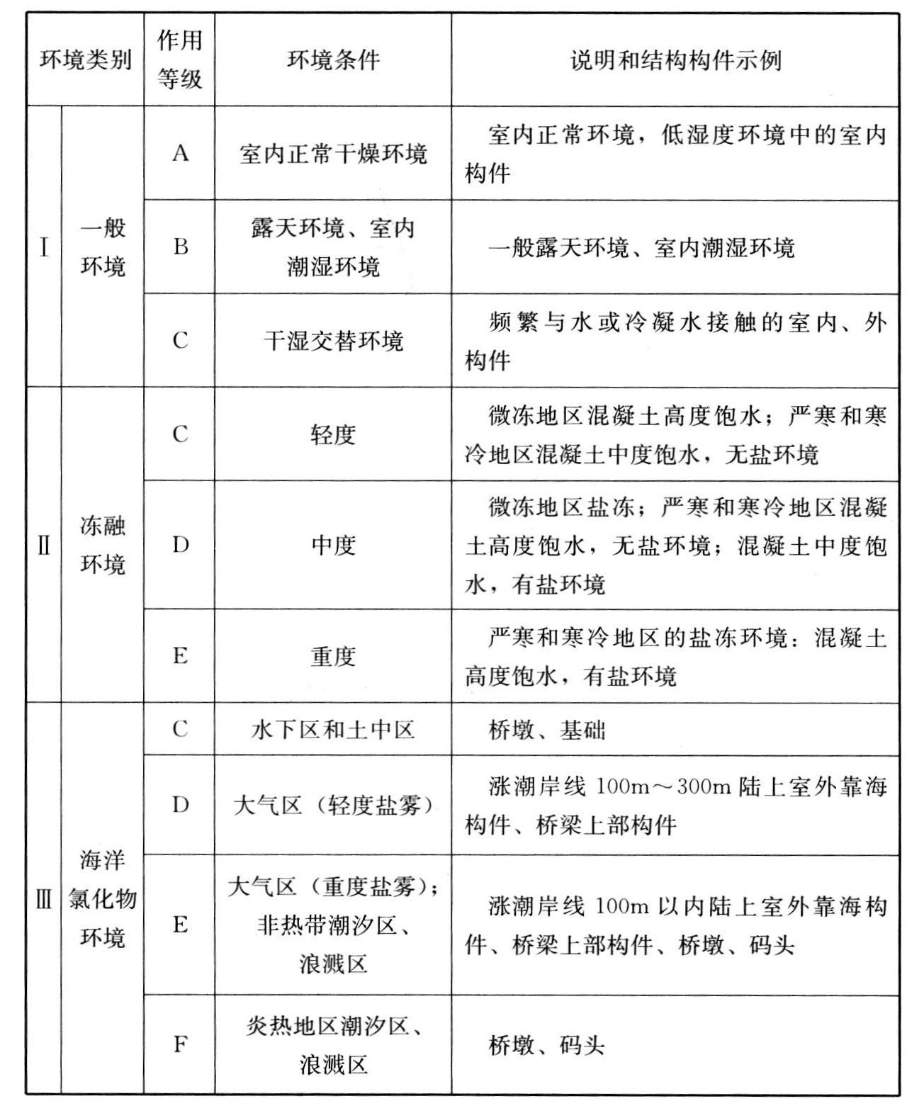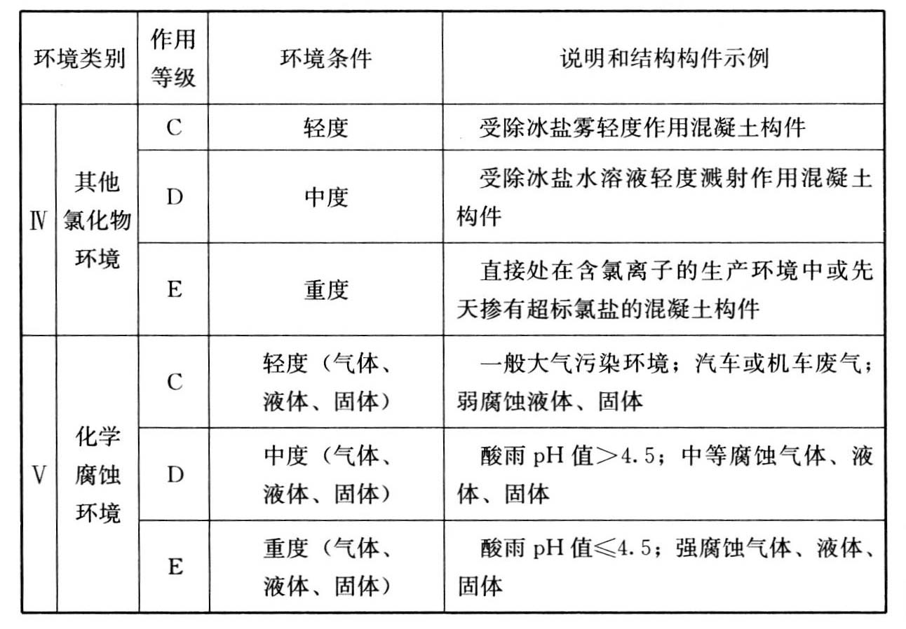 4.1.9 工业建筑所处的环境类别和作用等级,可依据表4.1.9的规定进行调查。当需要评估混凝土构件的耐久年限时,对大气环境普通混凝土结构可按本标准附录B的规定确定环境类别、环境作用等级和计算参数。其他环境可按现行国家标准《混凝土结构耐久性设计规范》GB/T 50476的规定确定环境类别、环境作用等级和计算参数。