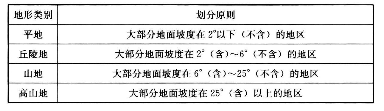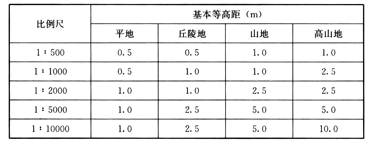 1 基本等高距不应大于表4.2.1-1的规定,其中地形类别划分应符合表4.2.1-2的规定。