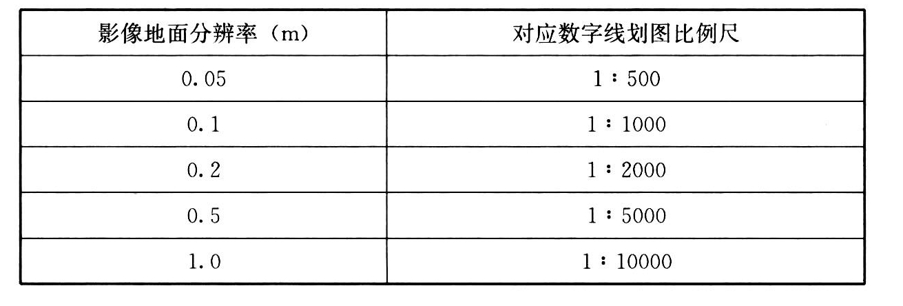 1 影像地面分辨率不应低于表4.2.2的规定。