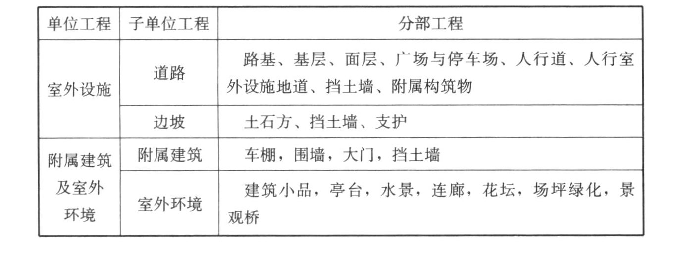 表B.0.1 室外工程的单位工程、子单位工程和分部工程划分