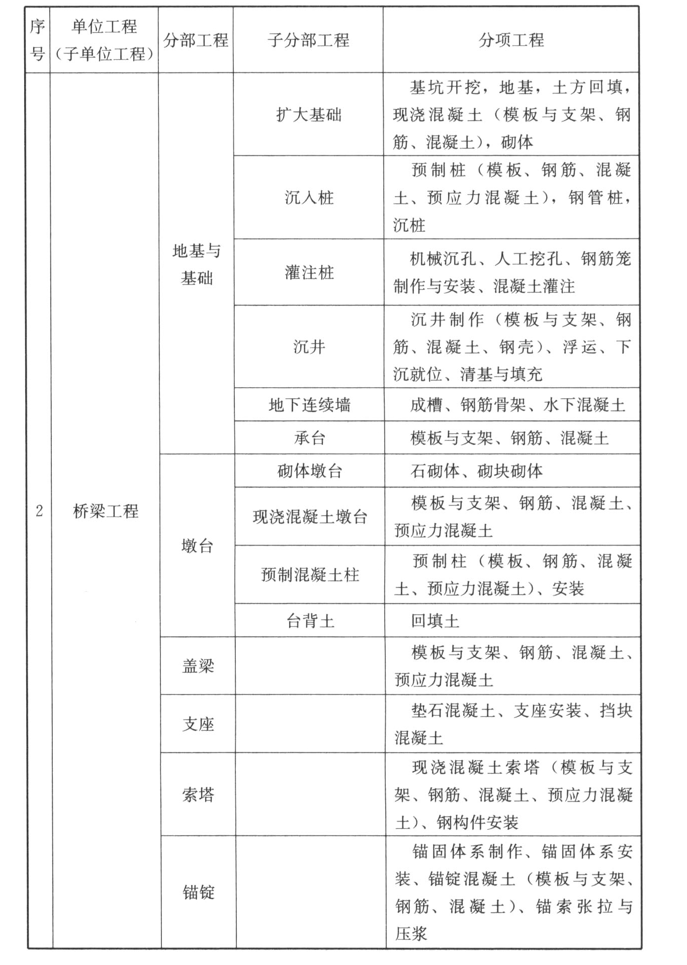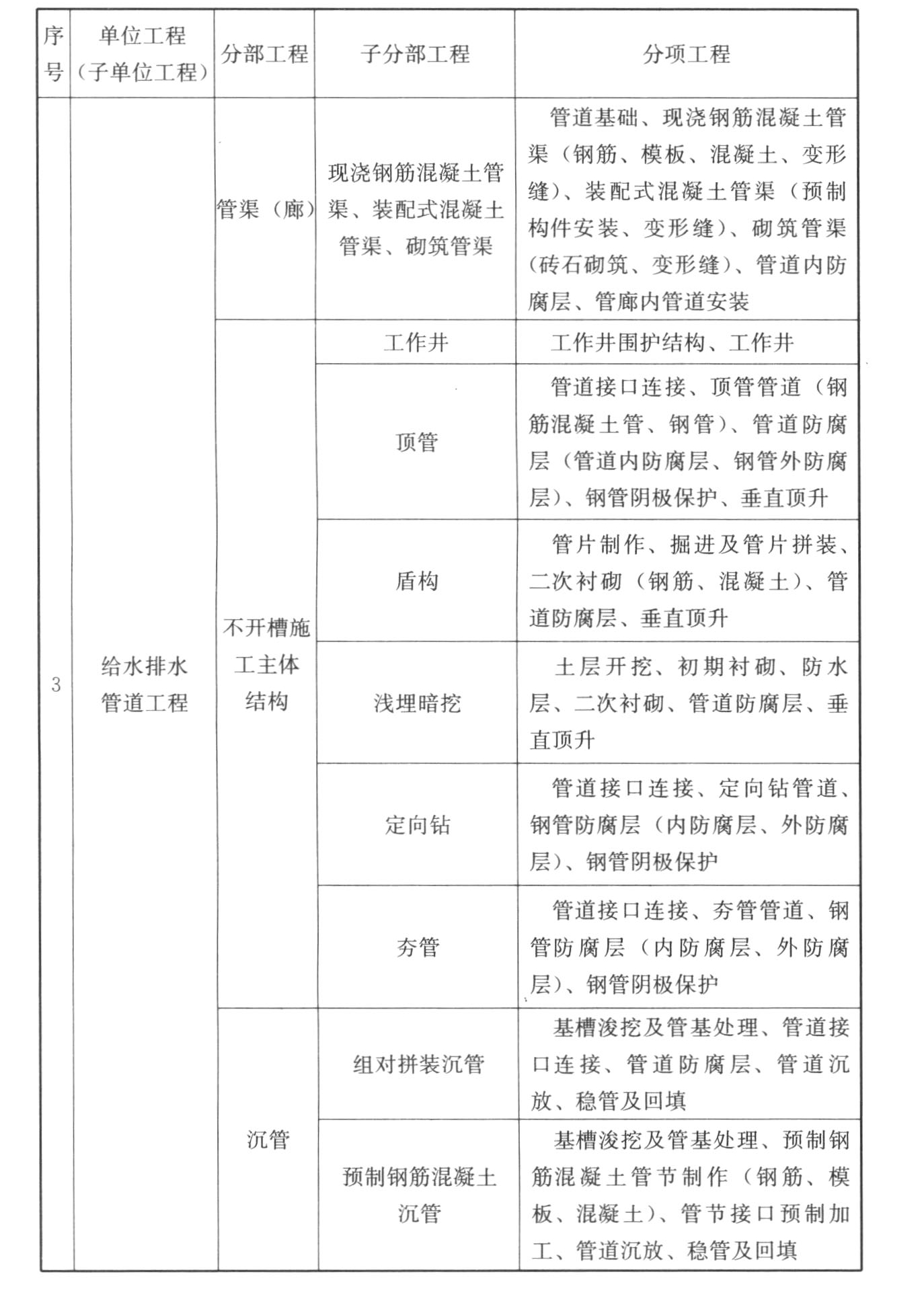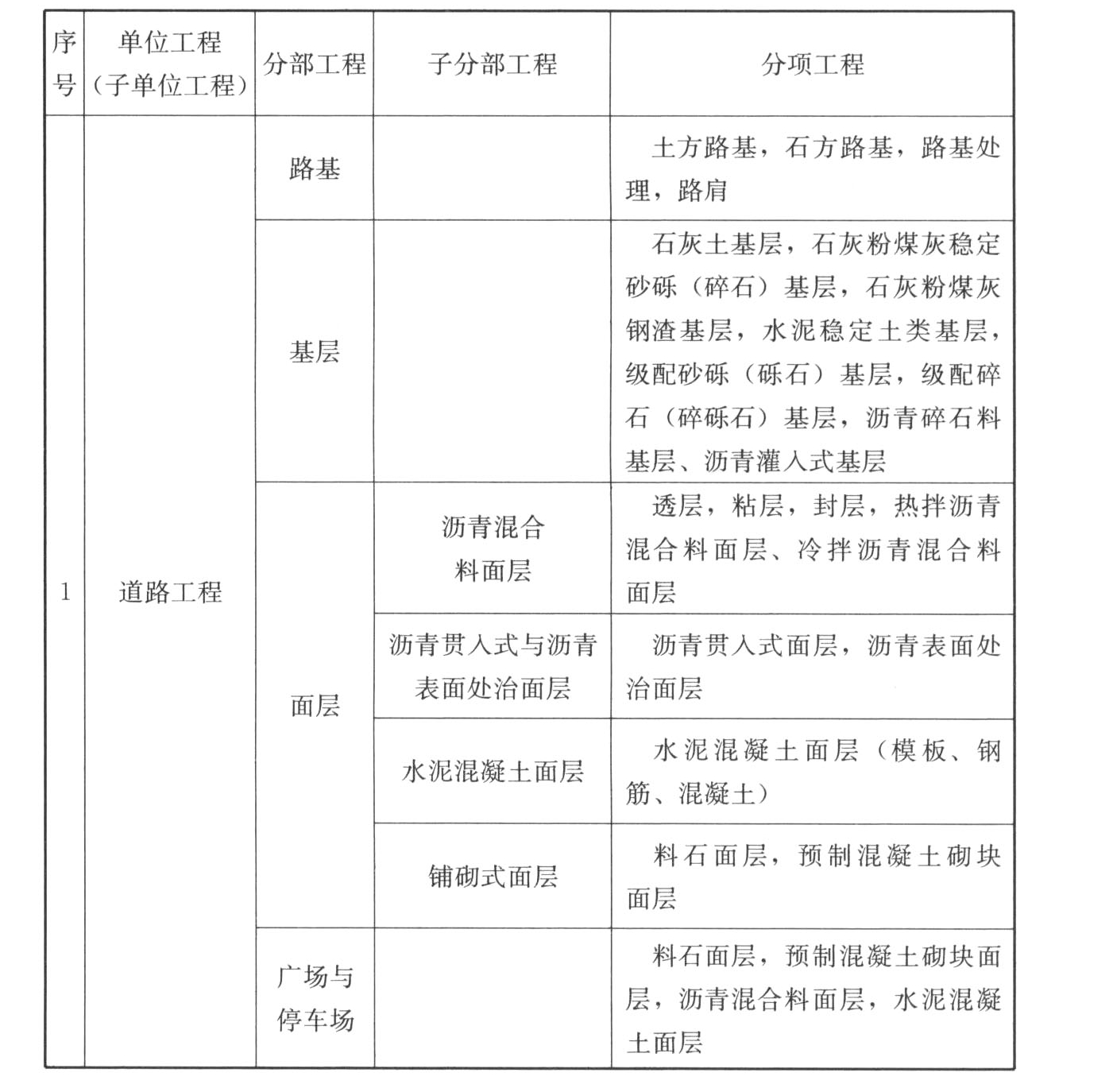 C.0.1 市政工程的单位工程、分部工程、分项工程划分应符合表C.0.1的规定。