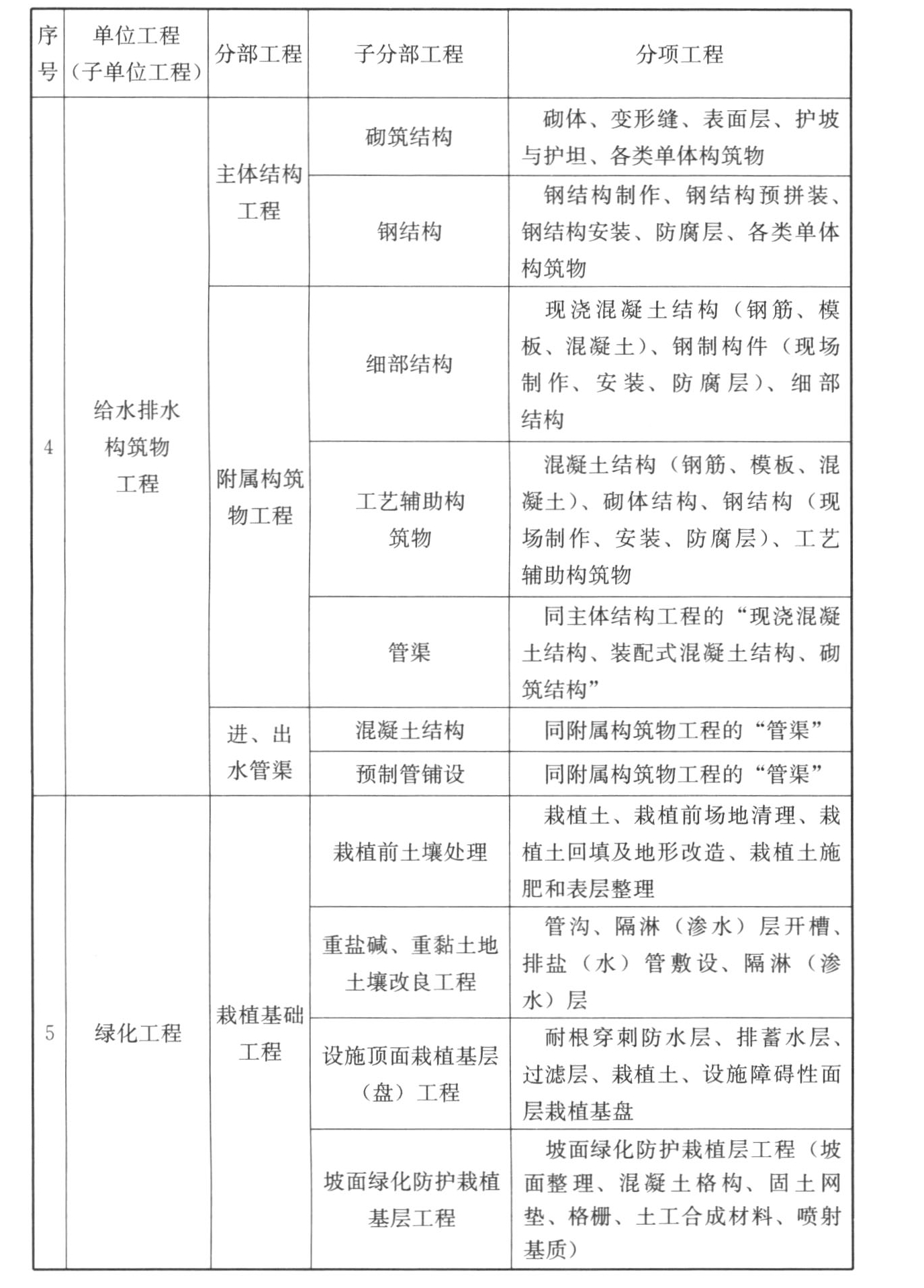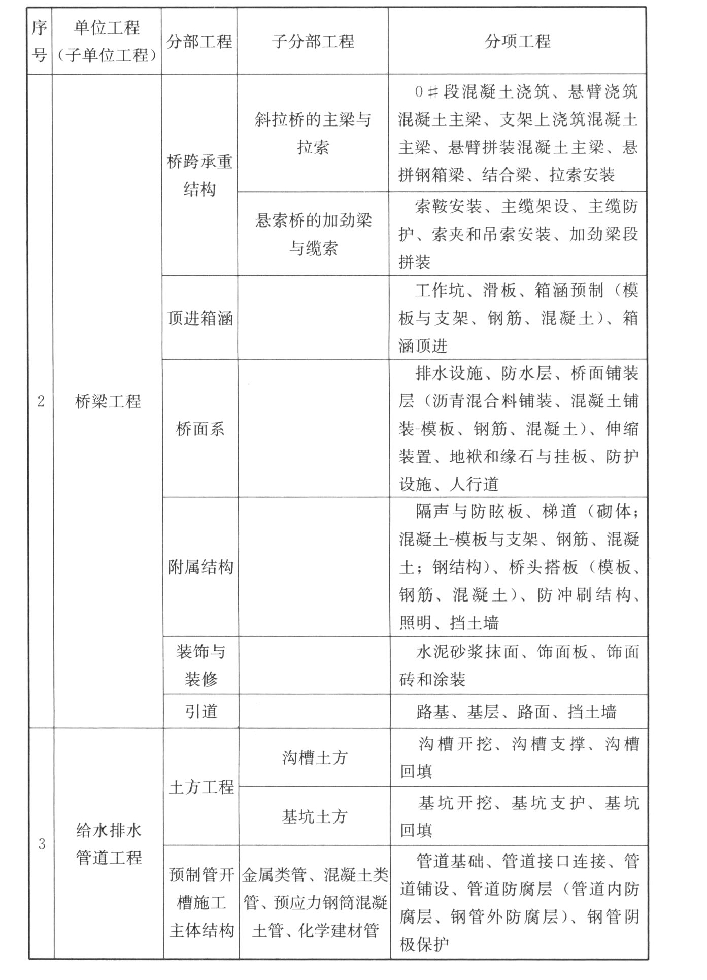 附录C 市政工程的单位工程、分部工程、分项工程划分