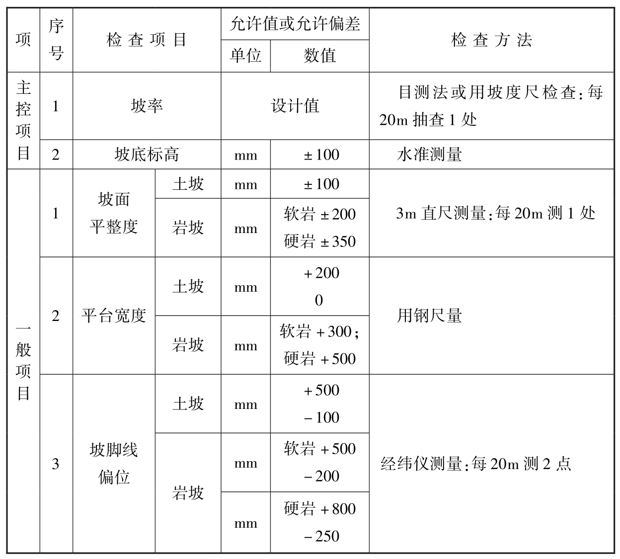 表10.4.6 边坡开挖质量检验标准