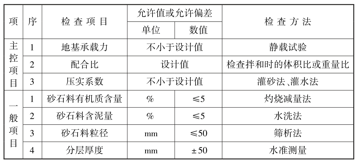 表4.3.4 砂和砂石地基质量检验标准