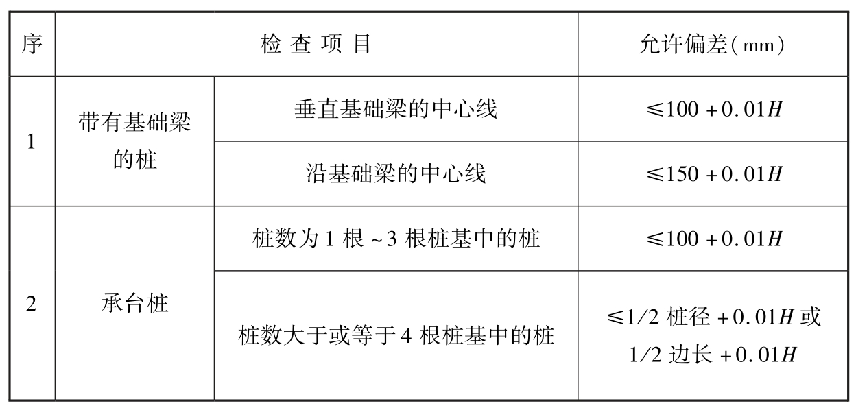 注:1 H为桩基施工面至设计桩顶的距离(mm);