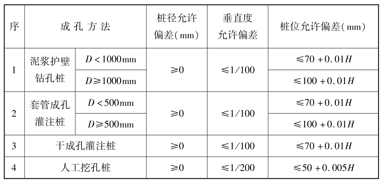 表5.1.4 灌注桩的桩径、垂直度及桩位允许偏差
