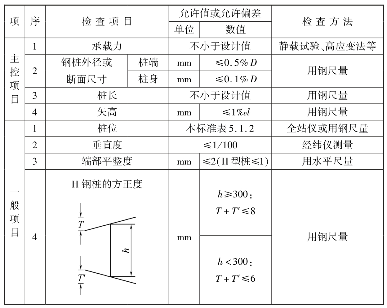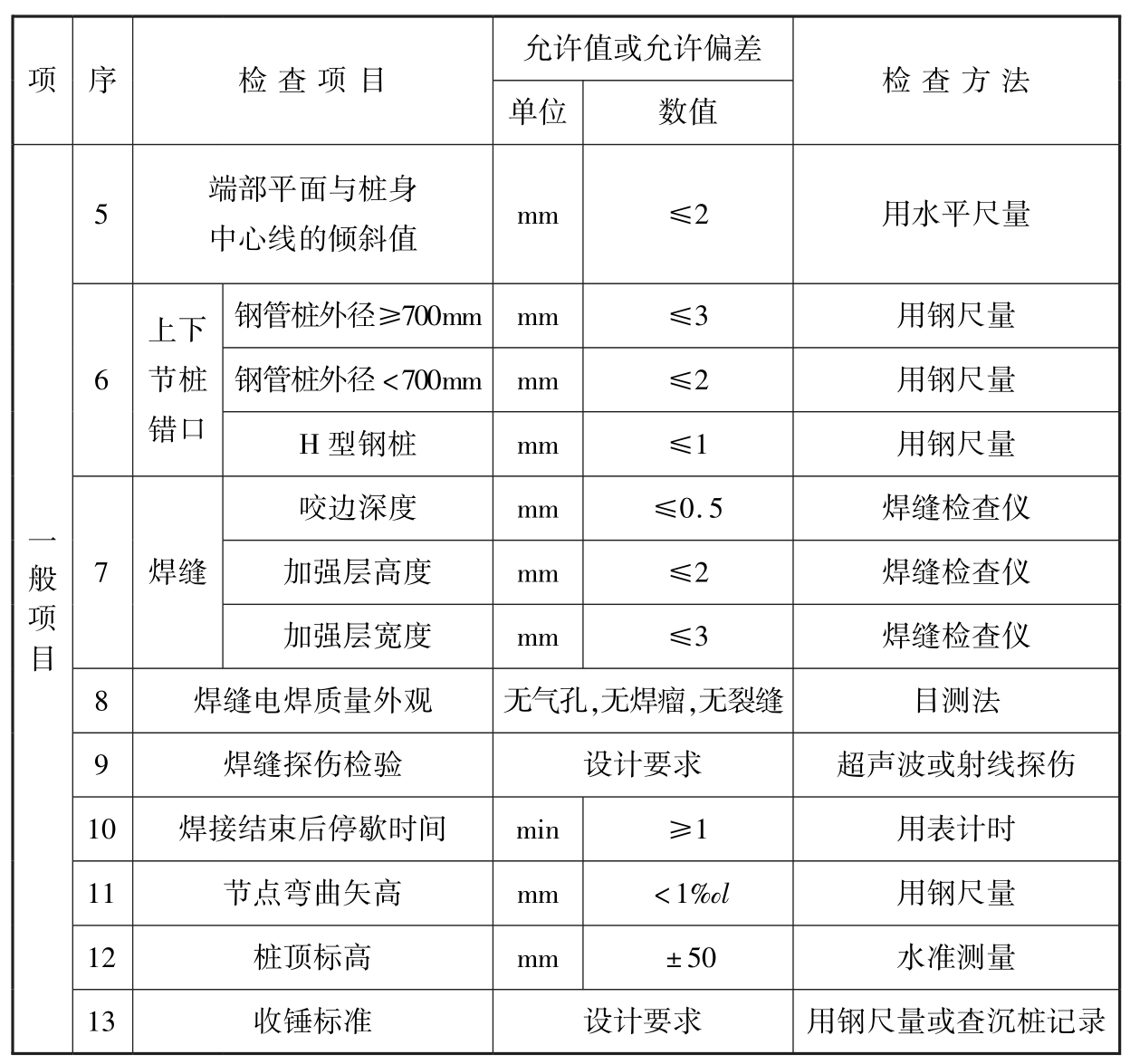 表5.10.4 钢桩施工质量检验标准