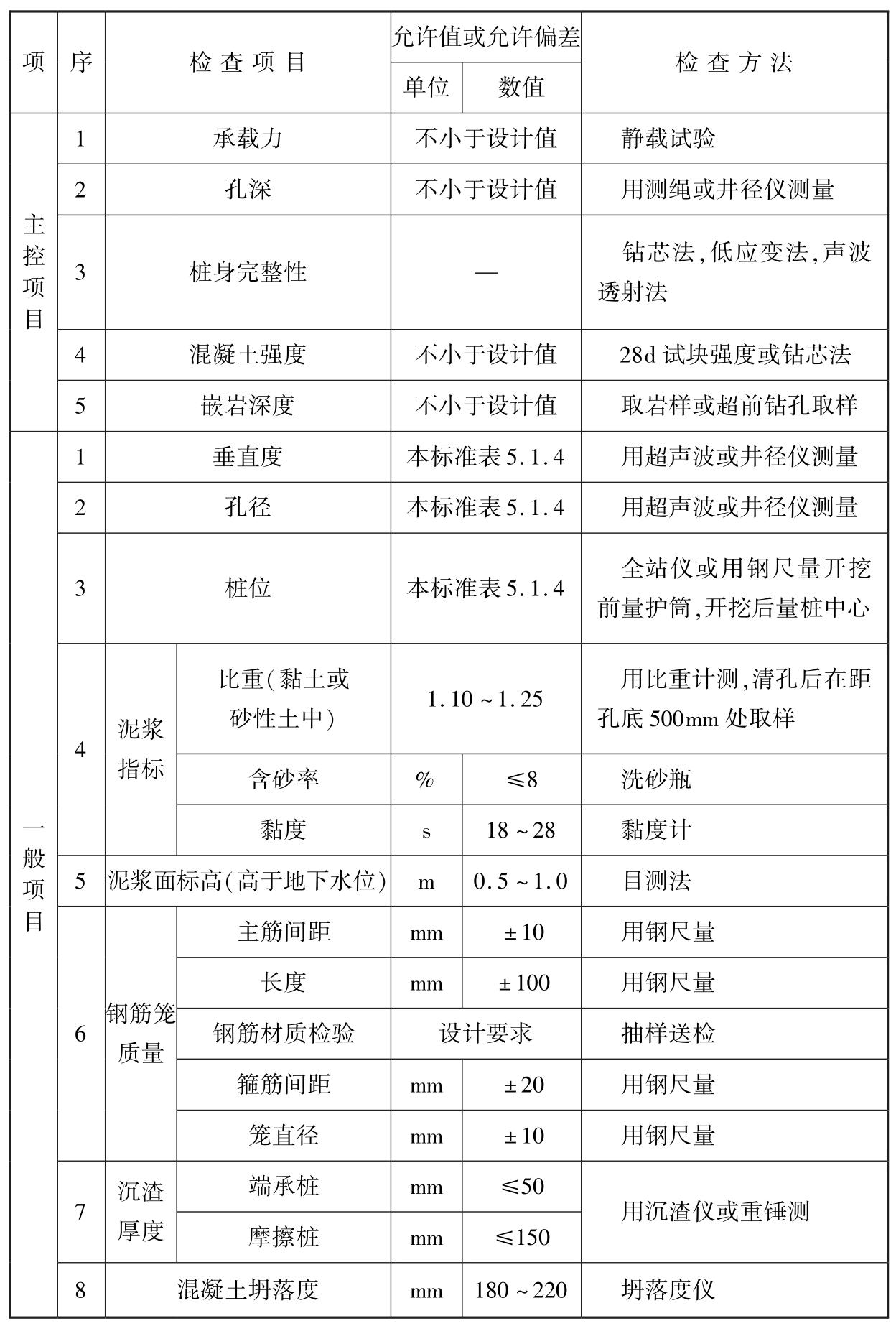 表5.6.4 泥浆护壁成孔灌注桩质量检验标准