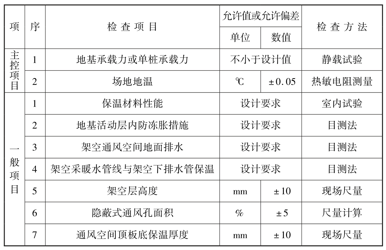 4 保温隔热地基质量检验标准应符合表6.3.1的规定。
