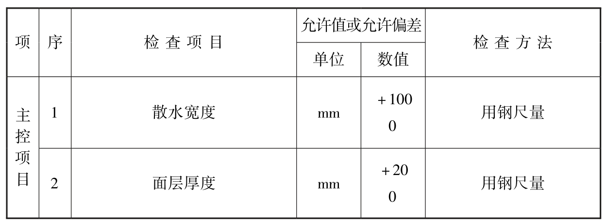 6.4.3 膨胀土地区建筑物四周设置的散水或宽散水质量验收标准应符合表6.4.3的规定。