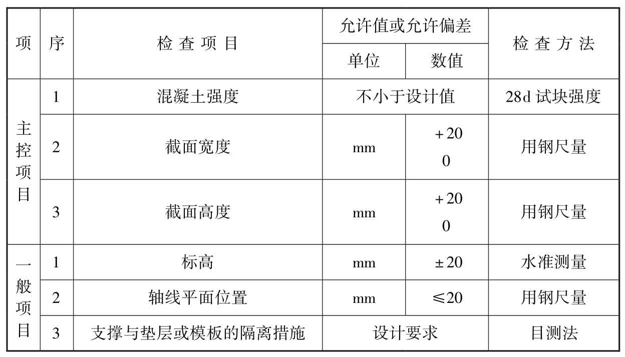 7.10.4 钢筋混凝土支撑的质量检验应符合表7.10.4的规定。