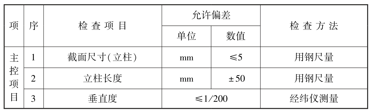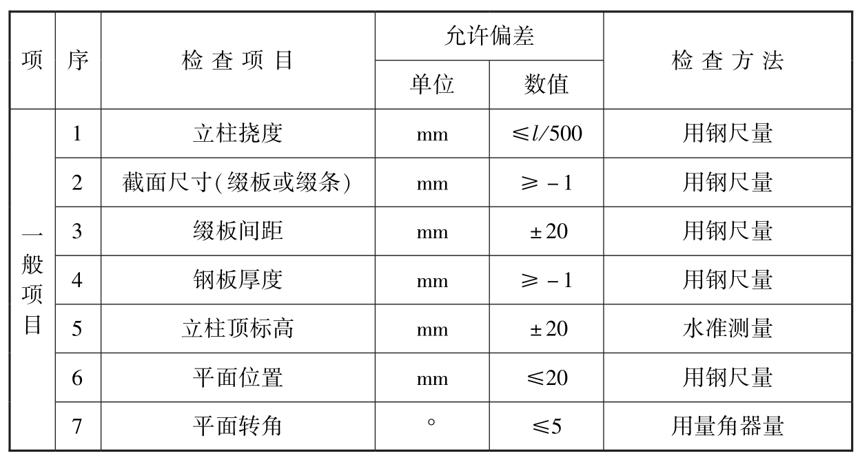7.10.6 立柱桩的质量检验应符合本标准第5章的有关规定。钢立柱的质量检验应符合表7.10.6的规定。