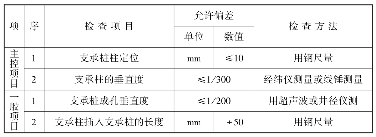 7.12.5 竖向支承桩柱除应符合本标准第7.10节的规定外,尚应符合表7.12.5的规定。