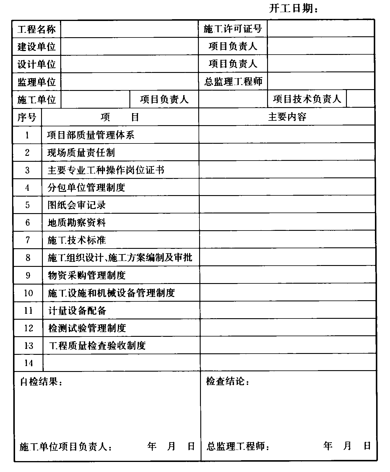 附录A 施工现场质量管理检查记录