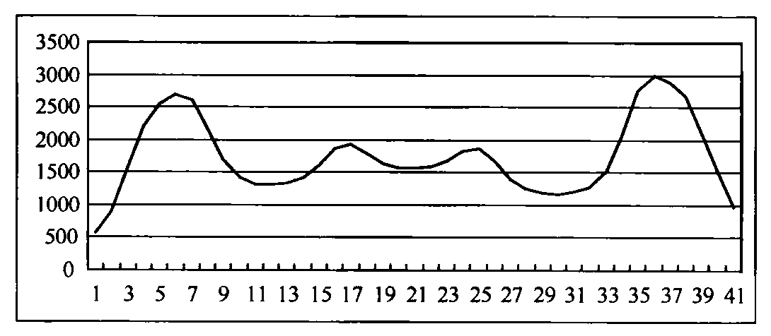 1 当探测曲线图显示明显变化的背景本底值时,可初步判断混凝土内存在钢构件;