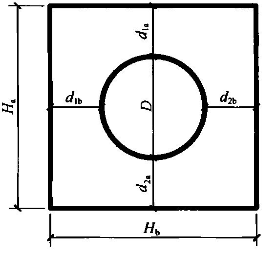 d2a、d2b——与d1a、d1b相对侧面的保护层厚度。 5 应对矩形组合构件的另一对侧面进行相同步骤的探测测试,并应将得到的圆形构件直径与前面得到的直径进行比较。