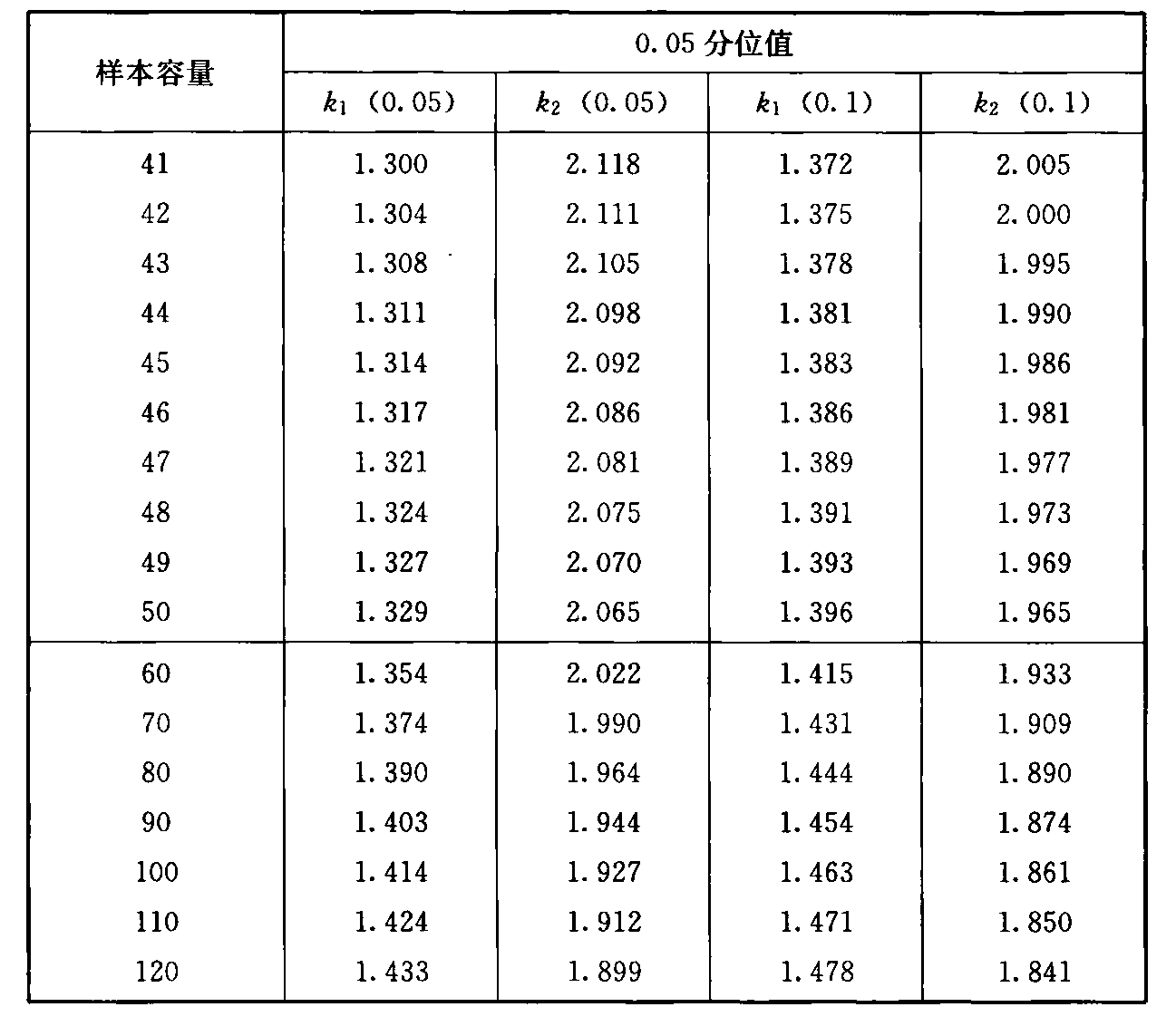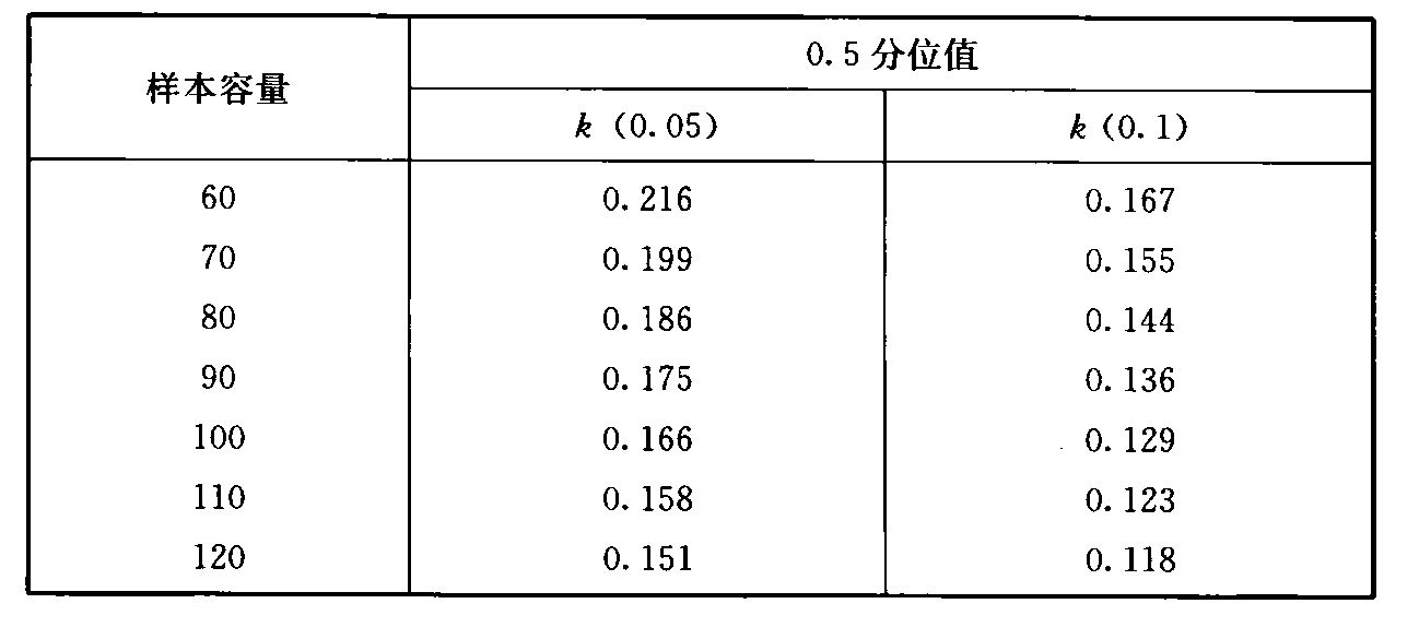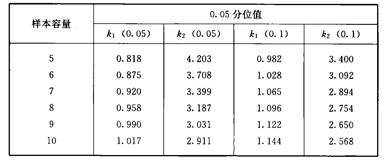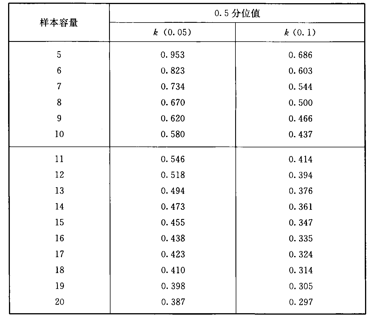 3.5.10 检测批的标准差σ为未知时,材料强度计量抽样检测批0.5分位值的推定区间上限值和下限值可按下列公式计算: