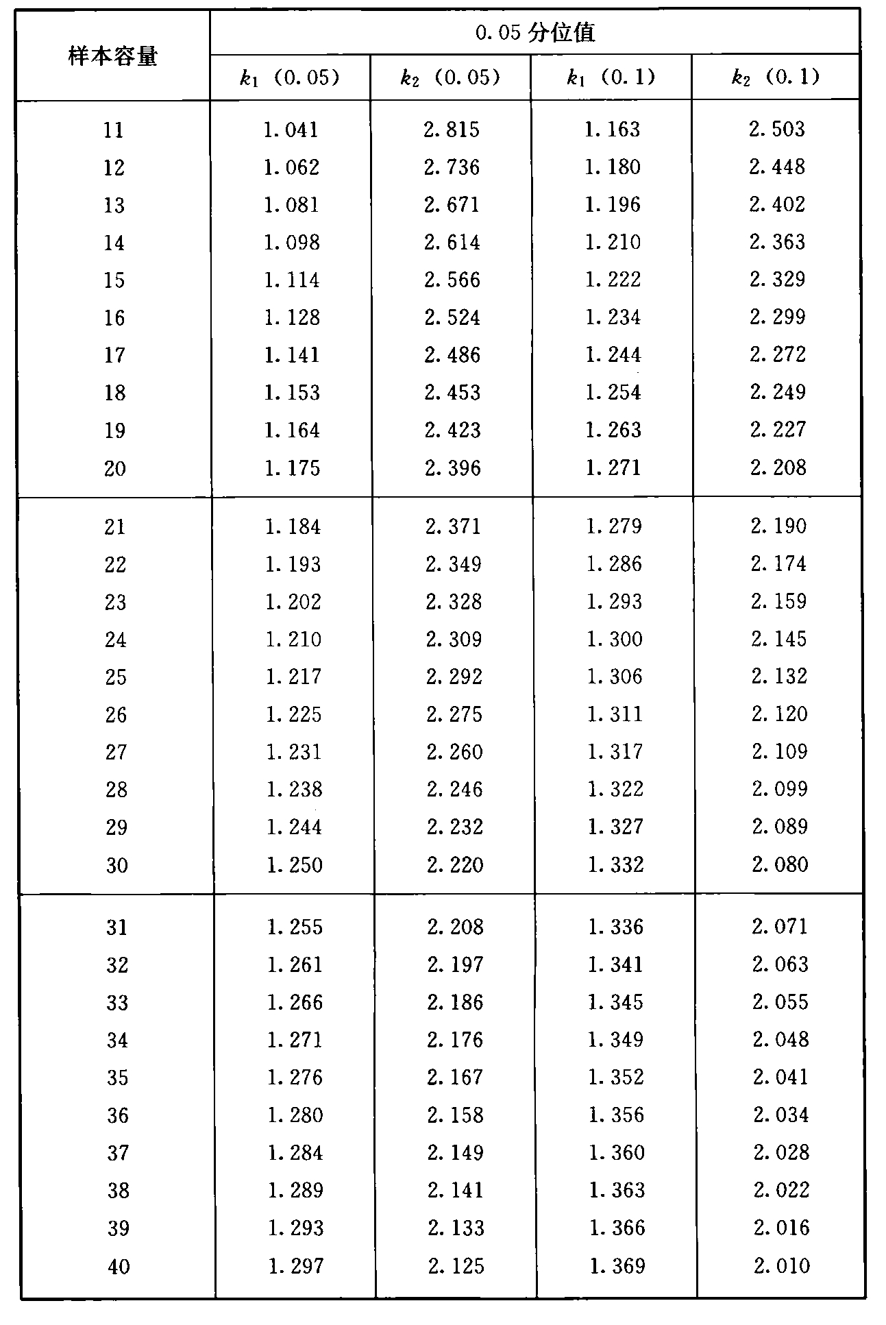 3.5.11 检测批的标准差σ为未知时,材料强度计量抽样检测批具有95%保证率标准值的推定区间上限值和下限值可按下列公式计算: