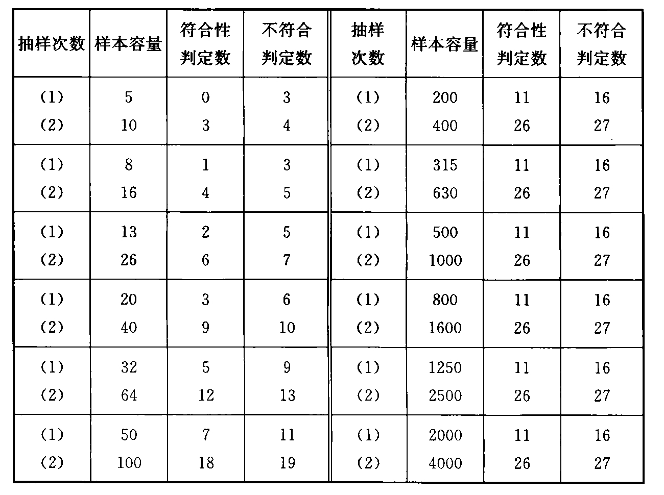 1)正常一次抽样应按表3.5.3-3的规定进行符合性判定;