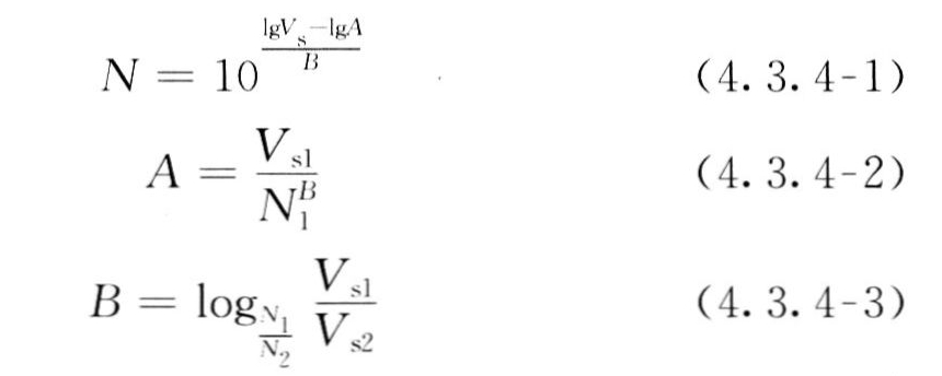4.3.4 瞬态面波试验的数据分析应符合现行行业标准《建筑地基检测技术规范》JGJ340的规定,岩土层的标准贯入击数可按下列公式推算: