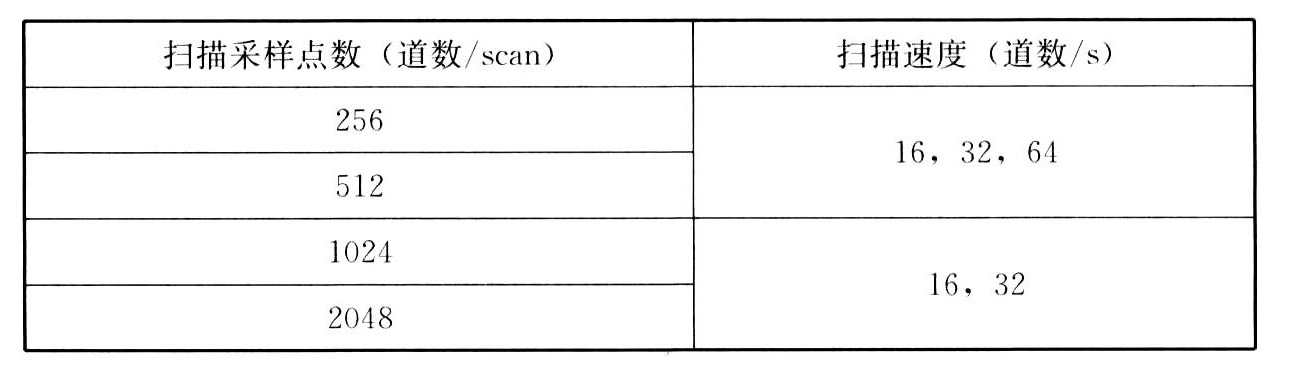 4.3.8 扫描采样点数宜选用128/scan、256/scan、512/scan、1024/scan或2048/scan,垂向分辨率要求较高时宜选取大值。