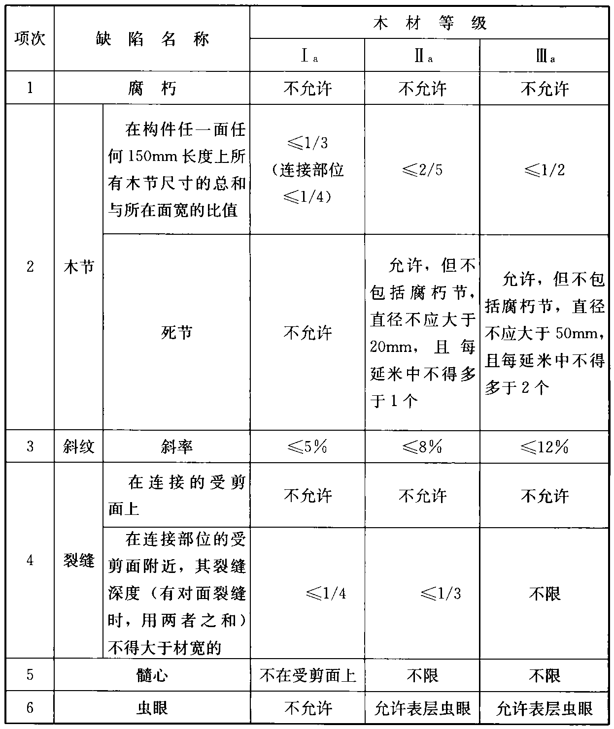 B.0.1 方木的材质标准应符合表B.0.1的规定。