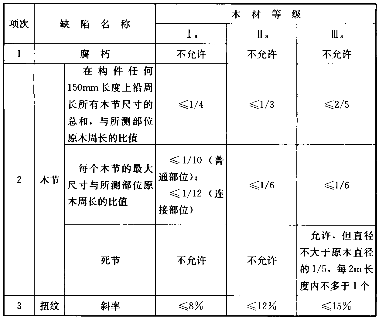 B.0.3 原木的材质标准应符合表B.0.3的规定。