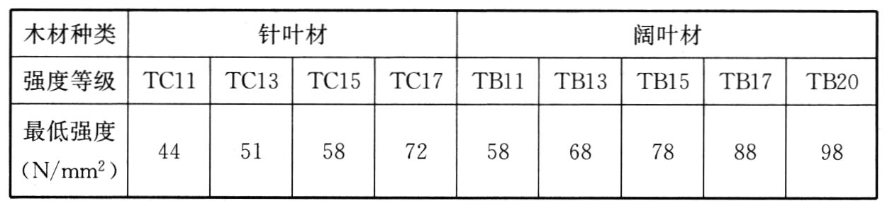 4.3.3 判定方木原木的木材强度等级时,检测获得的各组木材抗弯强度试验平均值中的最低值应符合表4.3.3的规定。