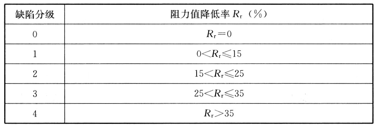 6.3.7 阻力仪检测法可用于0~500mm范围的深层腐朽检测,检测操作方法与计算方法应按本标准附录B的规定进行。腐朽程度的阻力仪检测法分级应按表6.3.7的规定执行。
