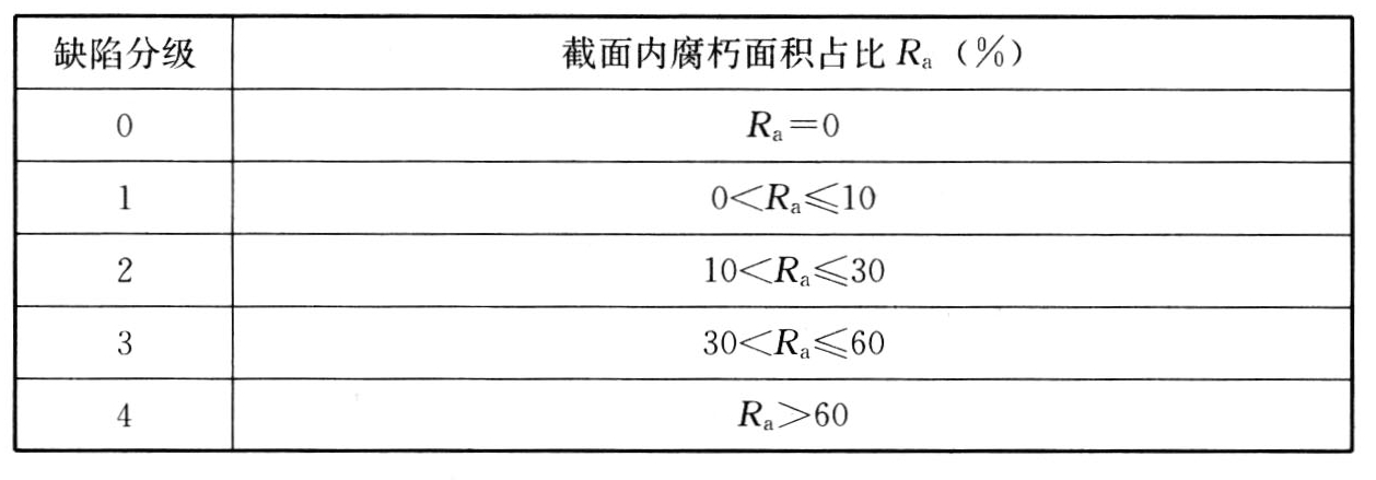 6.3.9 应力波法可用于构件全截面腐朽检测,木构件的腐朽面积精确测量宜采用断层成像仪与阻力仪相结合的检测方法,检测操作方法与计算方法应按本标准附录B的规定进行。应力波法腐朽程度的检测分级应按表6.3.9的规定执行。