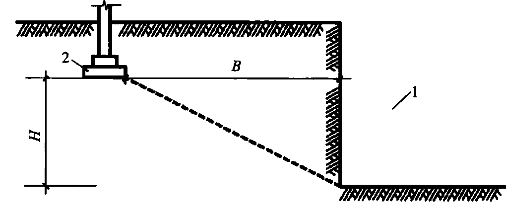 1—基坑或沟渠;2—建筑基础