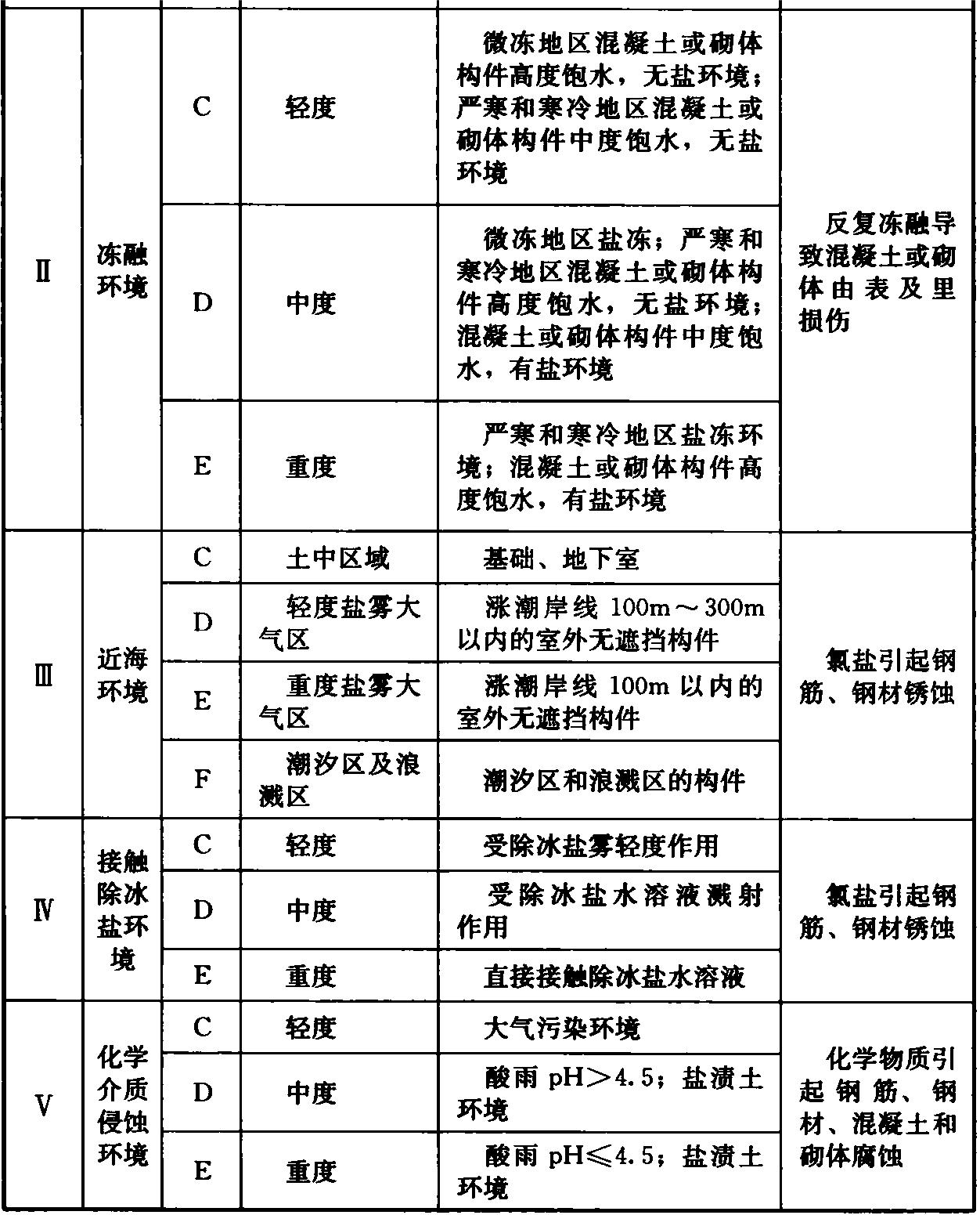 4.2.5 建筑物结构与构件所处的环境类别、环境条件和作用等级,可按表4.2.5所列项目进行调查。