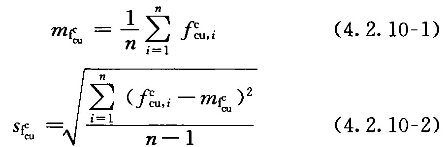 4.2.10 批量检测混凝土抗压强度时,样本换算强度平均值和样本换算强度标准差应按下列公式计算: