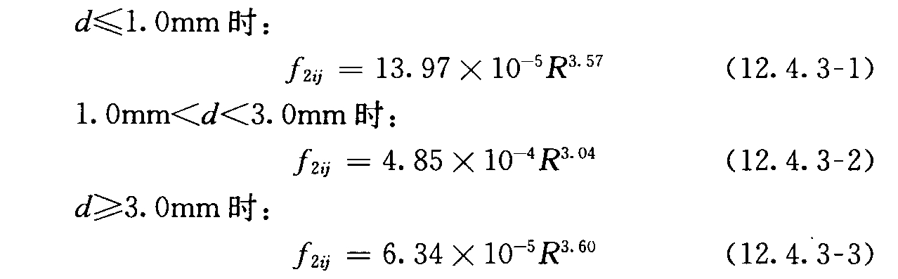 12.4.3 第i个测区第j个测位的砂浆强度换算值,应根据该测位的平均回弹值和平均碳化深度值,分别按下列公式计算: