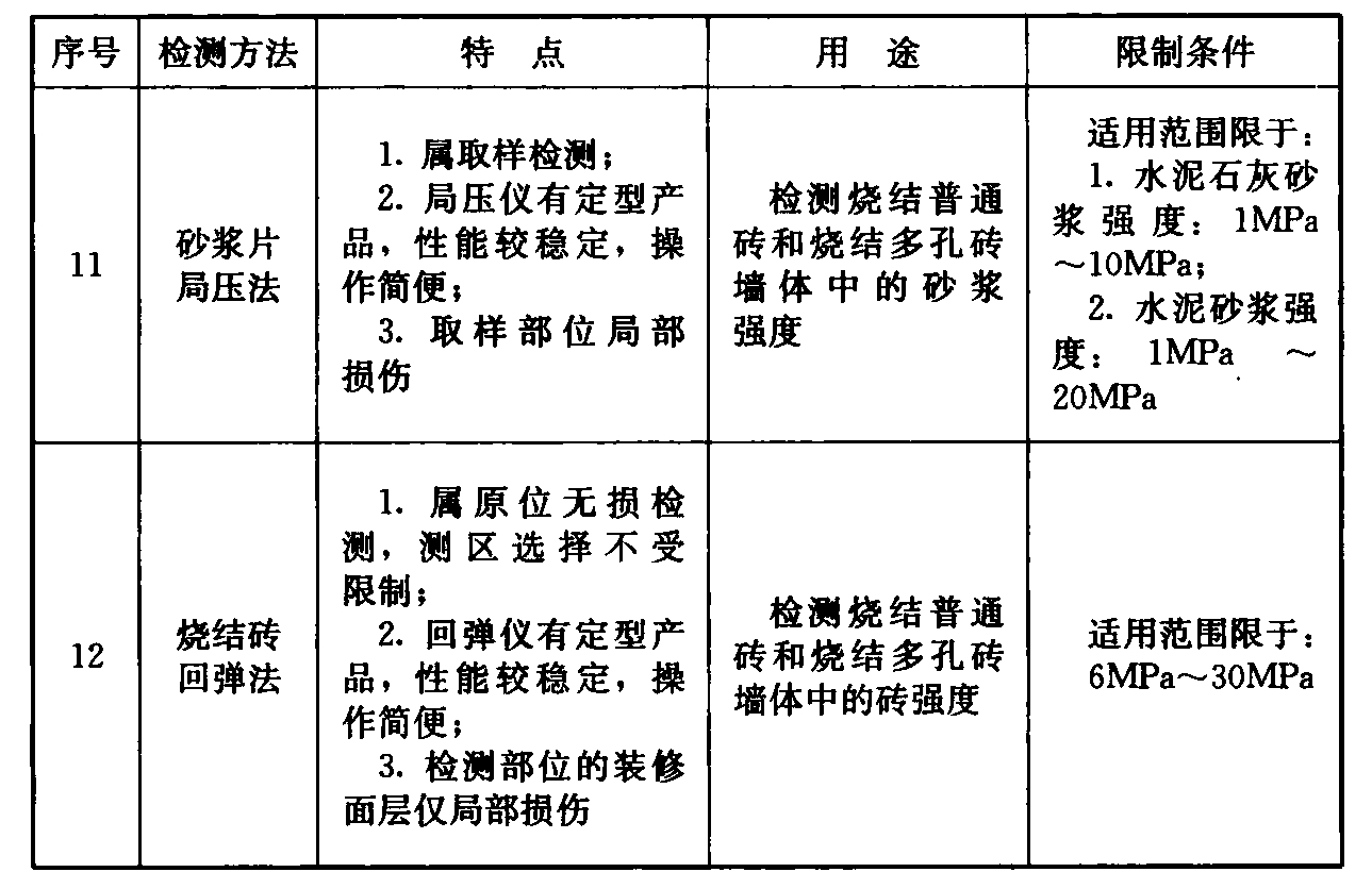 2 局部破损检测方法,在检测过程中,对砌体结构的既有力学性能有局部的、暂时的影响,但可修复。