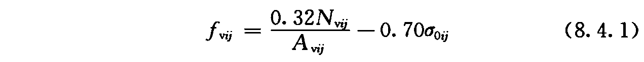 8.4.1 烧结普通砖砌体单砖双剪法和双砖双剪法试件沿通缝截面的抗剪强度,应按下式计算:
