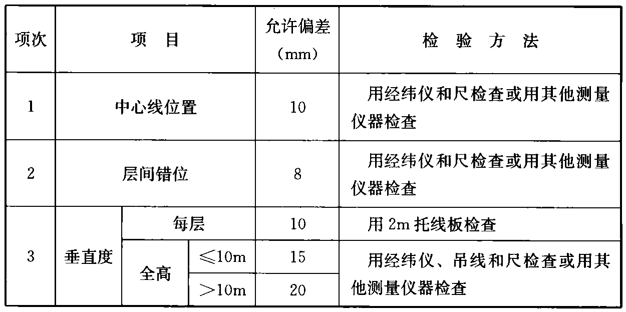 表8.3.1 构造柱一般尺寸允许偏差及检验方法
