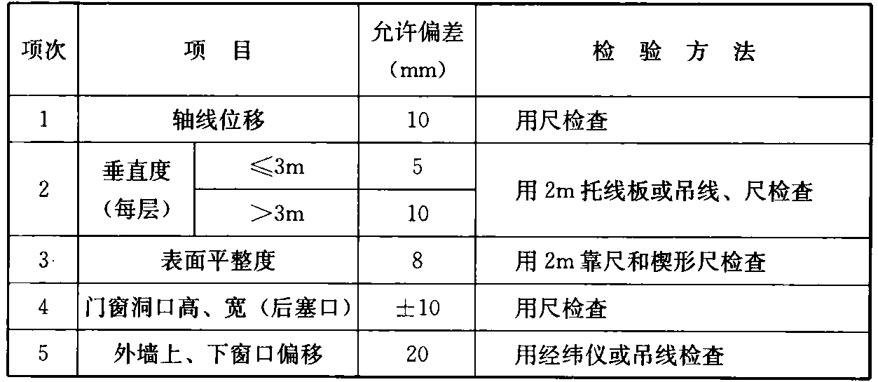9.3.1 填充墙砌体尺寸、位置的允许偏差及检验方法应符合表9.3.1的规定。