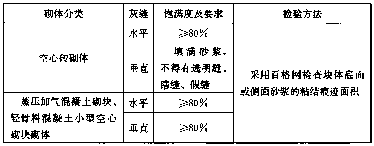 表9.3.2 填充墙砌体的砂浆饱满度及检验方法