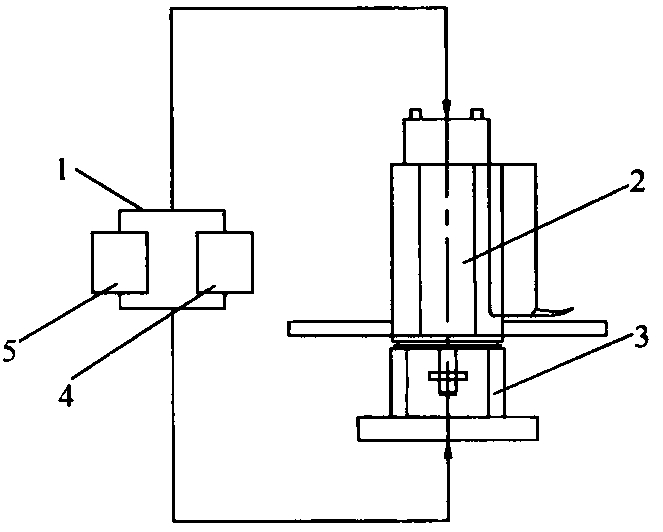1—弹簧拉压试验机;2—贯入仪;3—U形架;4—荷载表;5—位移表