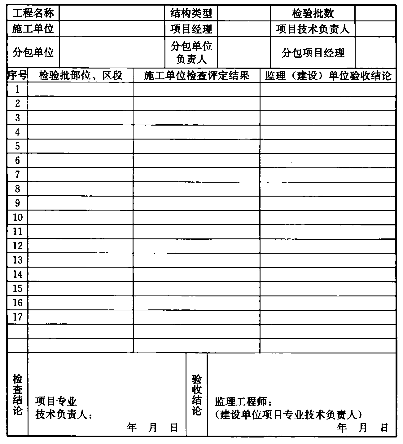 附录B 分项工程质量应由施工项目经理部专业质量检查员填写,监理工程师(建设单位项目专业技术负责人)进行验收,并按表B记录。
