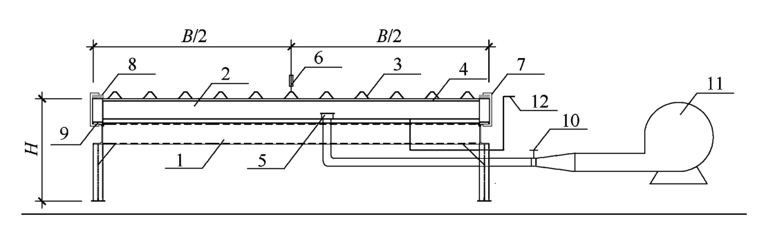 1—测试平台;2—压力容器;3—试件系统;4—檩条;5—进风口挡板;