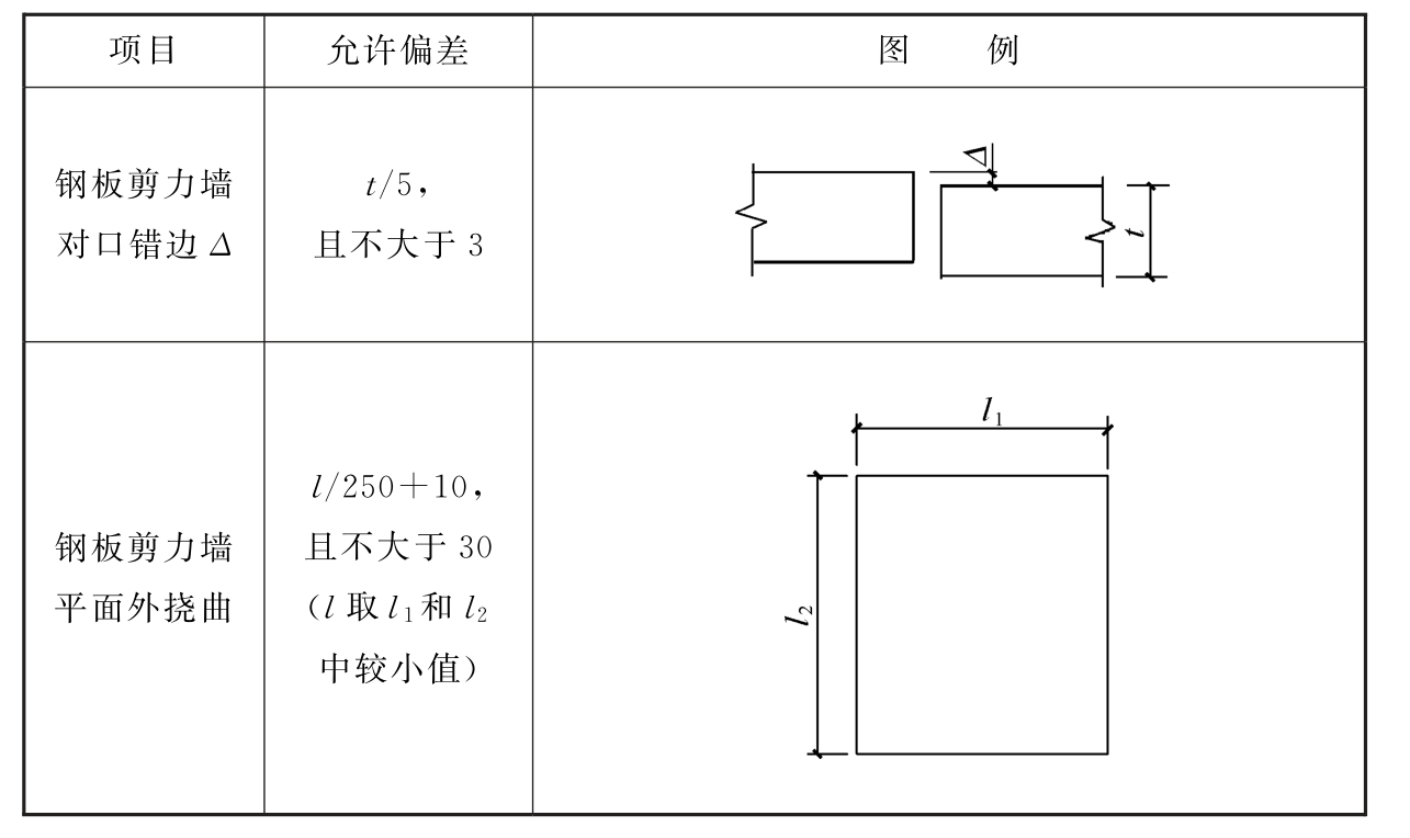 10.6.2 钢板剪力墙对口错边、平面外挠曲应符合表10.6.2的规定。