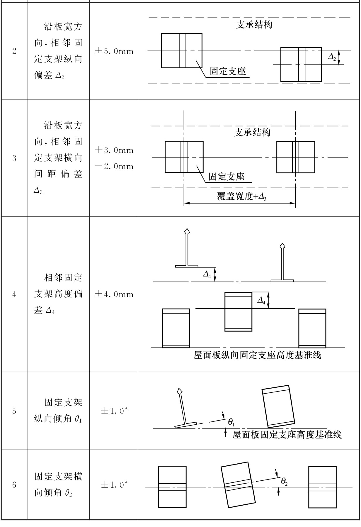表12.4.2 固定支架安装允许偏差