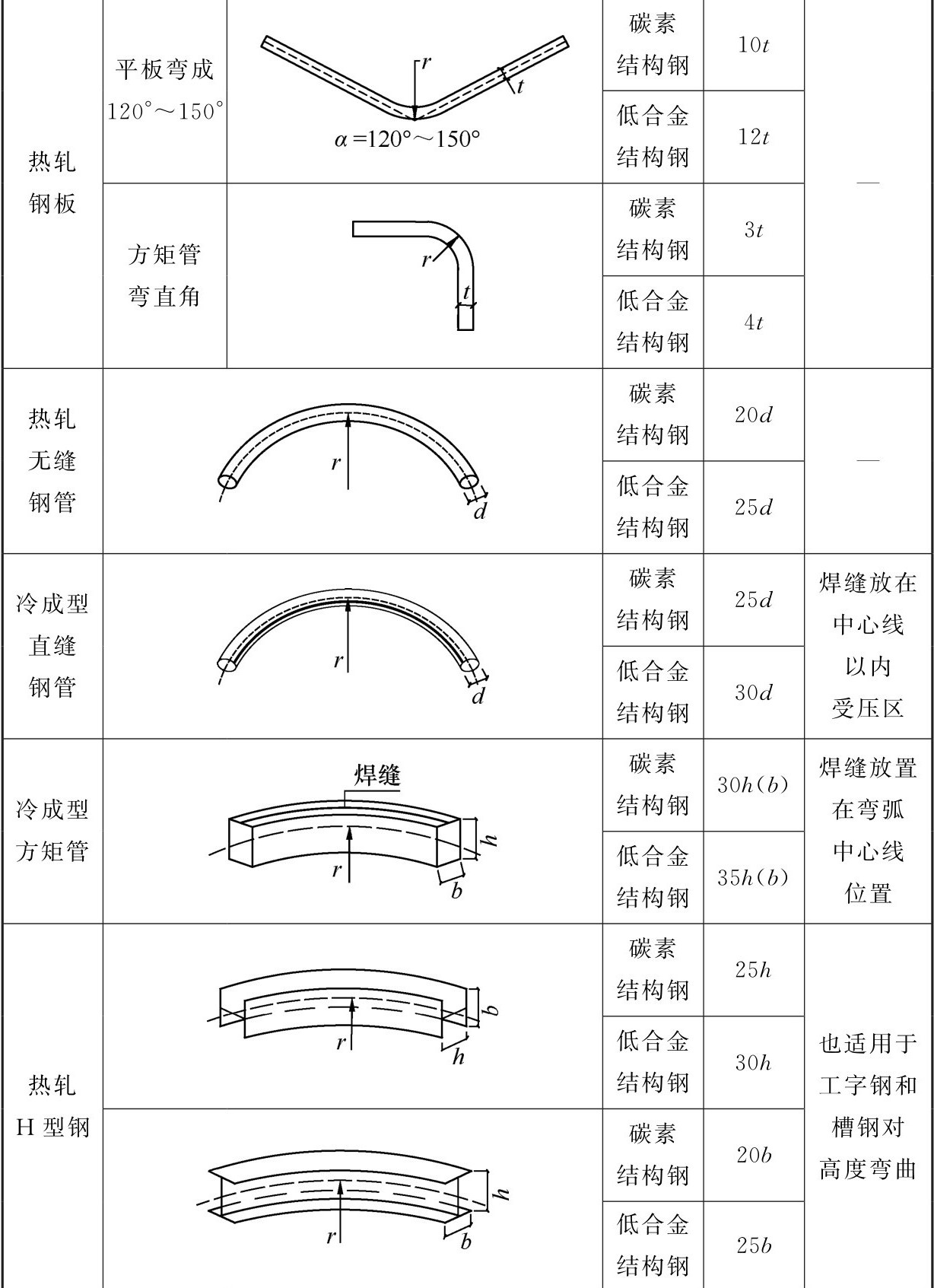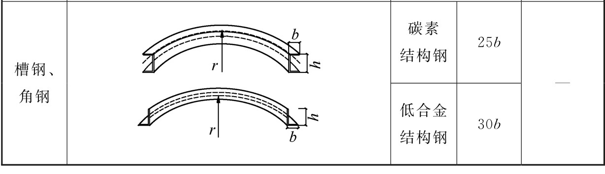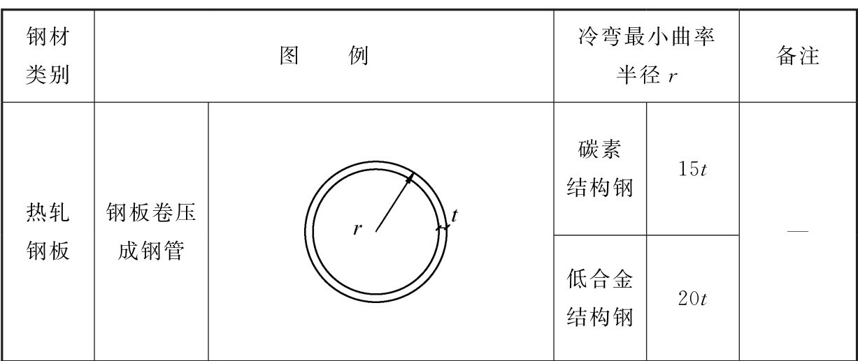 7.3.5 板材和型材的冷弯成型最小曲率半径应符合表7.3.5的规定。