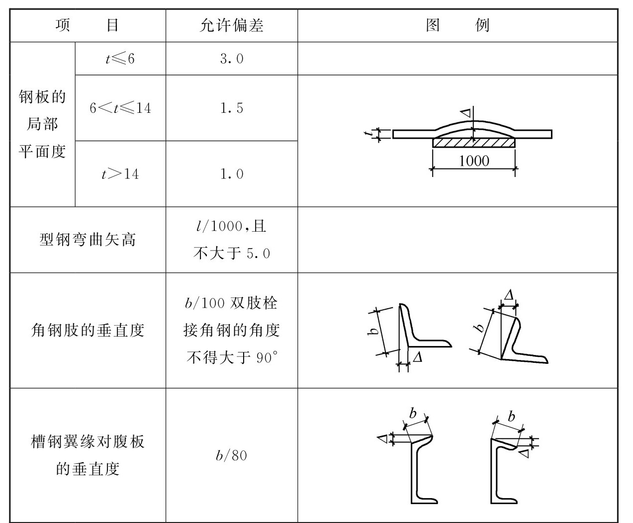 7.3.6 钢材矫正后的允许偏差应符合表7.3.6的规定。