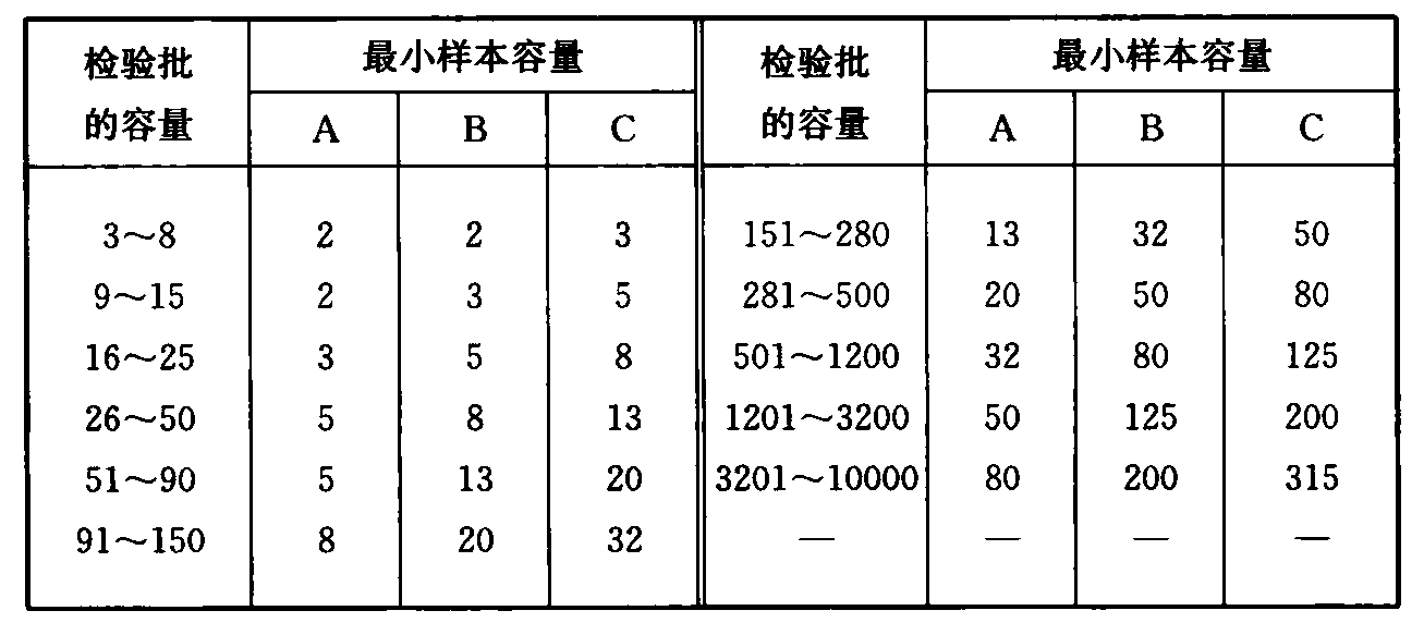 3.4.4 既有钢结构计数抽样检测时,其每批抽样检测的最小样本容量不应小于表3.4.4的限定值。