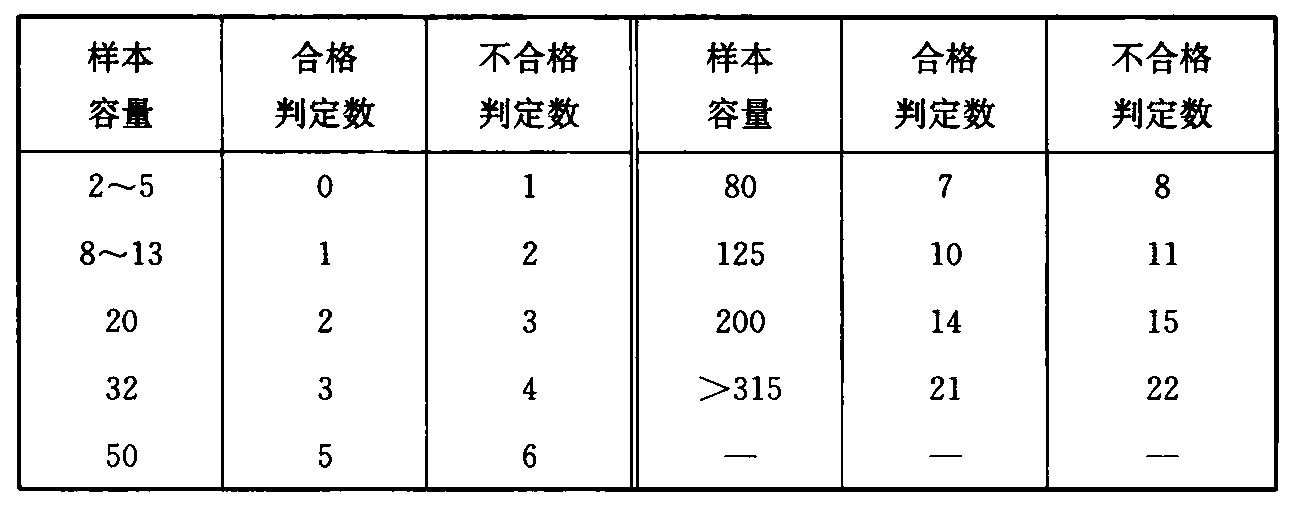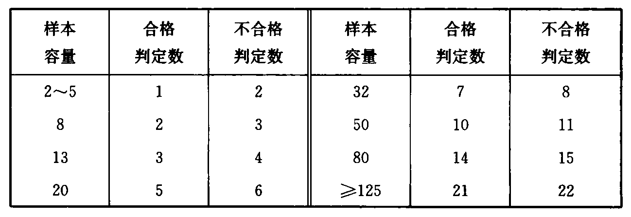 2 计数抽样检测的对象为一般项目时,应按表3.4.5-2判定。